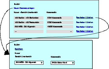 diesem Formular werden Nutzer mit Bereichen und Unterbereichen in