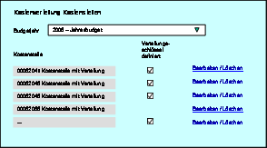 Kostenstellen mit definierten Verteilungsschlüsseln. Die Verteilungen
