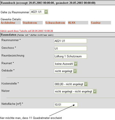 Raumnummer A021 U1 editiert werden. Man möchte zum Beispiel die