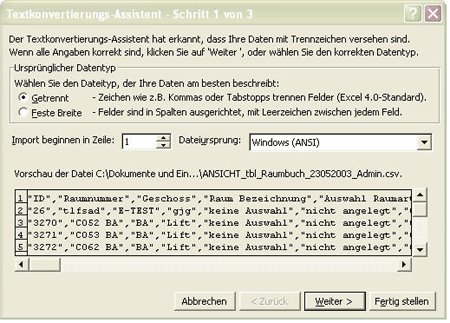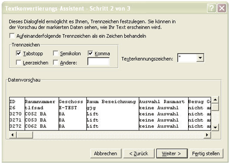 Importieren einer CSV- Datei in Excel