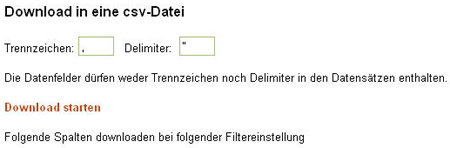 welche Spalten mit welchen Attributen heruntergeladen werden soll.