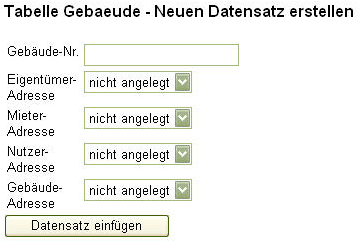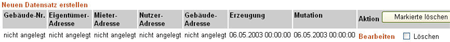 In dieser Tabelle ist es möglich, ein neues Gebäude einzugeben