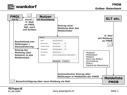 der Datenbank) kann Meldungen eingeben, die später zu einem Auftrag