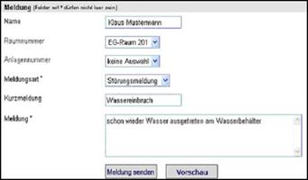 Meldung zu generieren. Die folgende Formularmaske zeigt die nacheinander