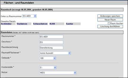 sich das Raumeingabeformular. Nun können die erforderlichen Daten