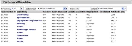 Raum. Sie sortiert die in der FMDB hinterlegten Raumdaten nach den