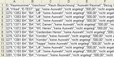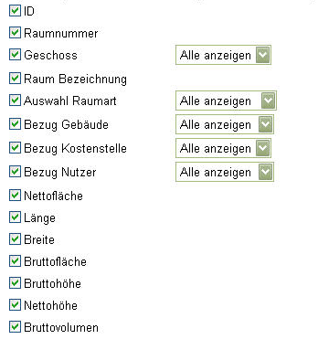 In der Tabelle «Raumdaten» soll ein Raum zur Ansicht
