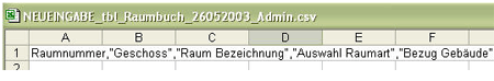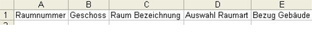 - In den Spalten Raumnummer, Geschoss, Raumbezeichnung und
