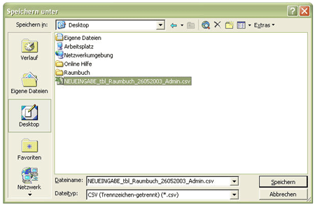 beendet, erkennt man die CSV- Datei durch die Zusatzbemerkung