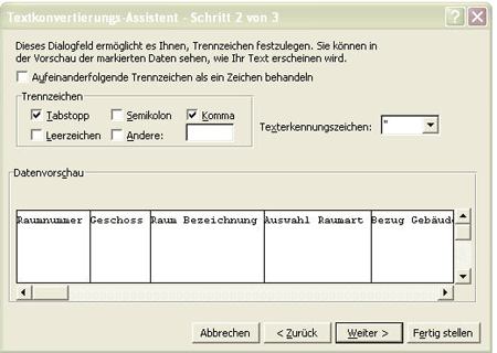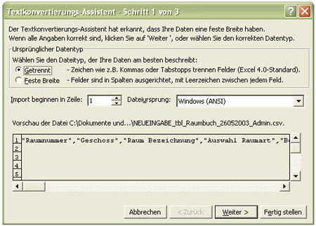 Ansicht nichts angefangen werden kann. Die Datei muss in Excel importiert