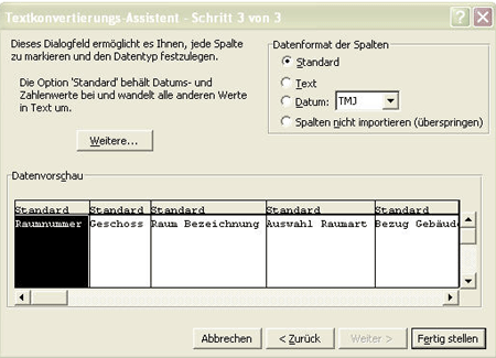 Hier erscheinen nun alle Raumarten welche in der Excelliste
