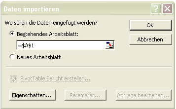 Importieren einer CSV- Datei in Excel